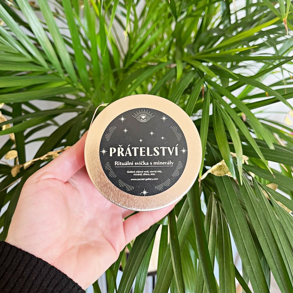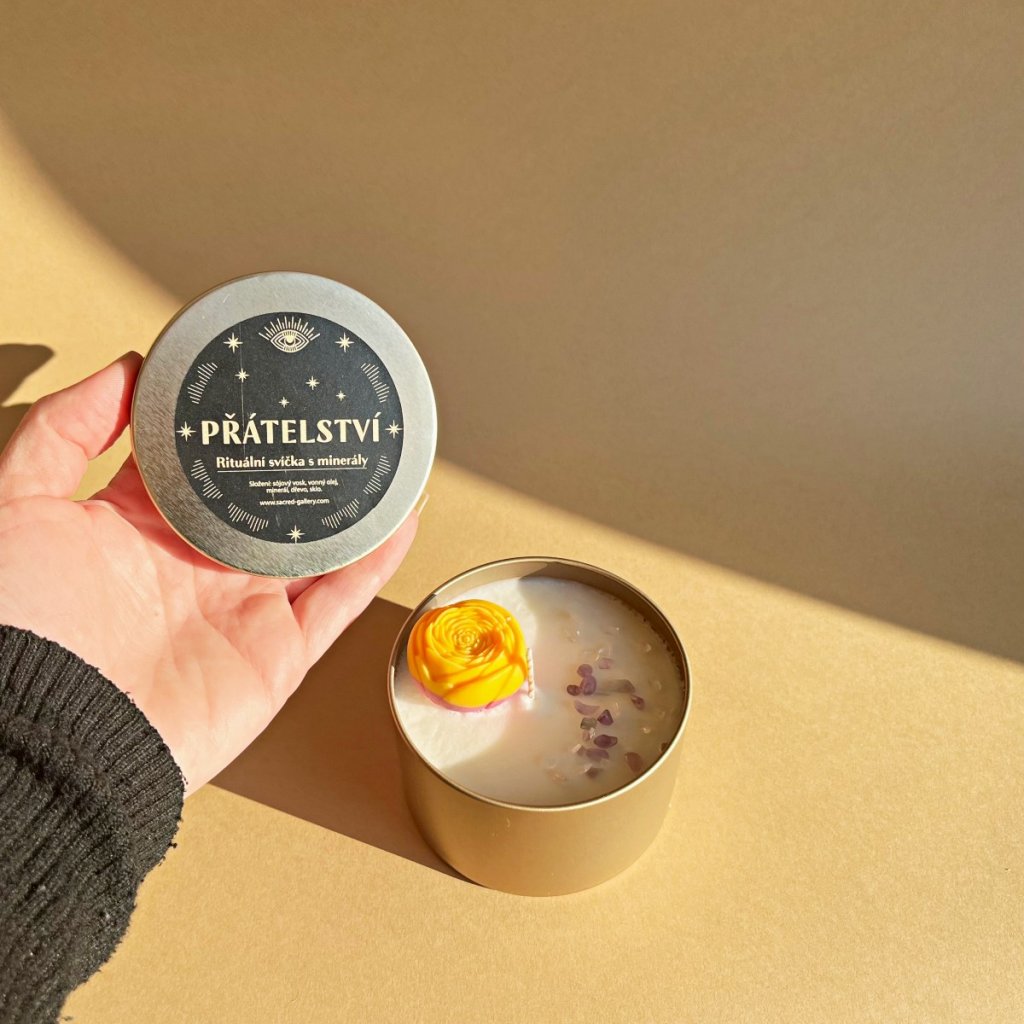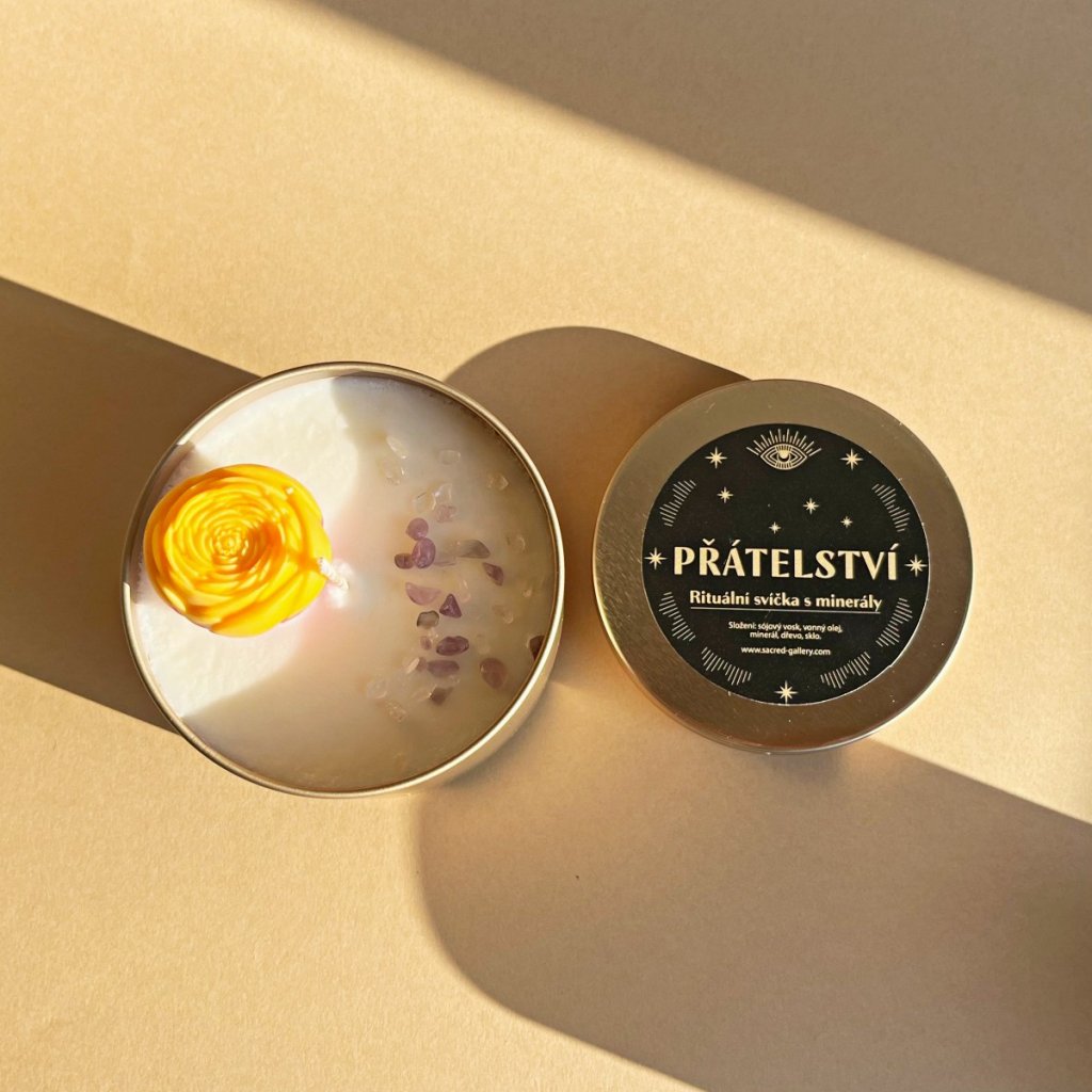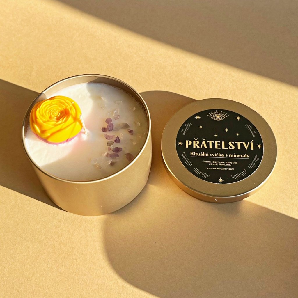 Vonná svíčka s kytičkou a minerály Přátelství