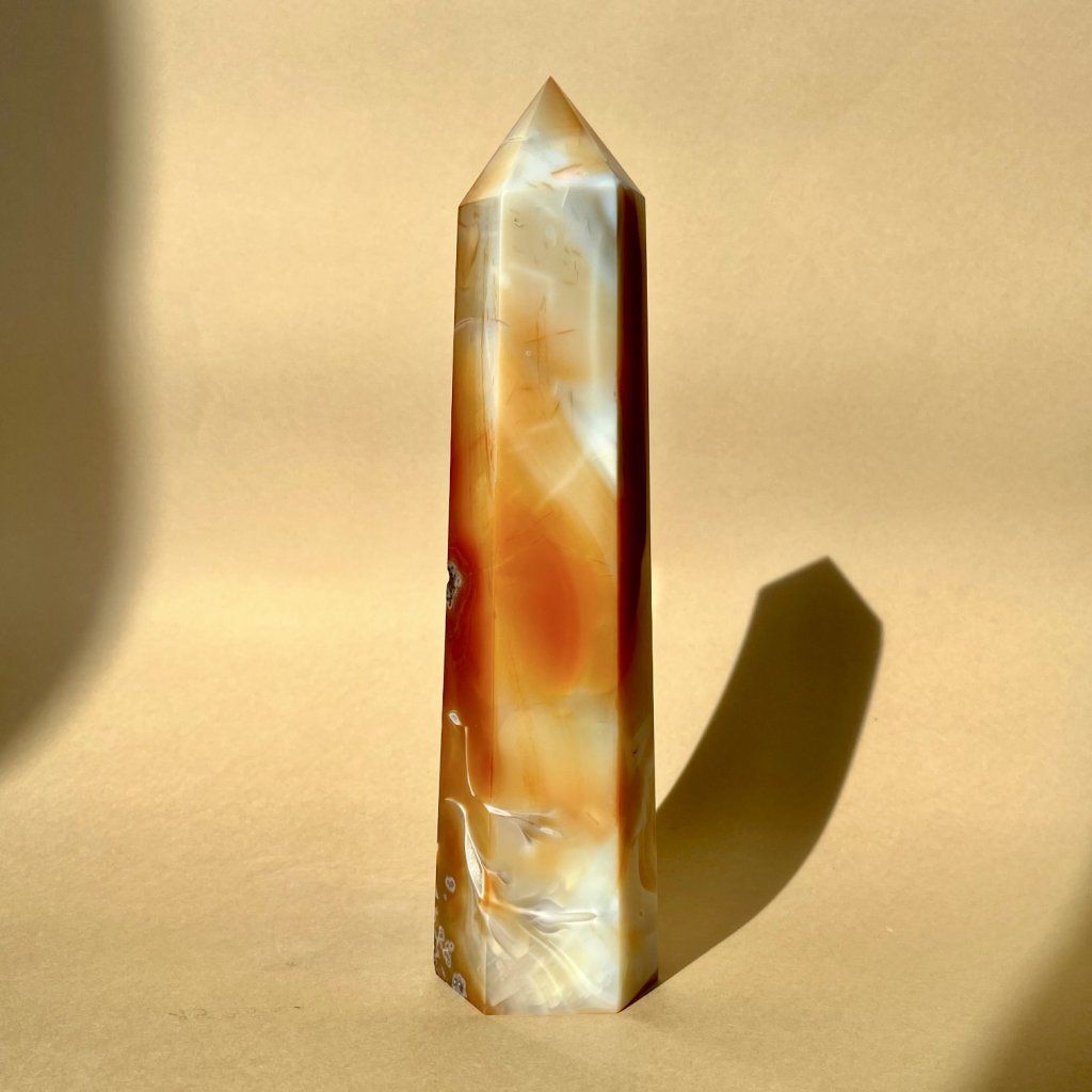 Prohlížíte si kámen ve tvaru obelisku. Hrot neboli obelisk se také nazýval “Pyramidion” jelikož podobně jako pyramida kumuluje energetický tok. Je to zároveň tvar krystalům nejpřirozenější, protože tak sami rostou. Kamenné špice automaticky aktivují “proudění” a toho se dá s výhodou využít při konkrétním směřování Vašeho záměru či harmonizování.