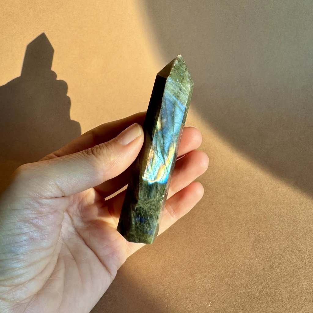 Tato krystalická špička z labradoritu není jen dekorací – její tvar zesiluje proudění energie, soustřeďuje záměr a směruje ho vzhůru. Můžeš ji použít na oltář, k meditaci, jako nástroj manifestace nebo ochranný bod v prostoru.