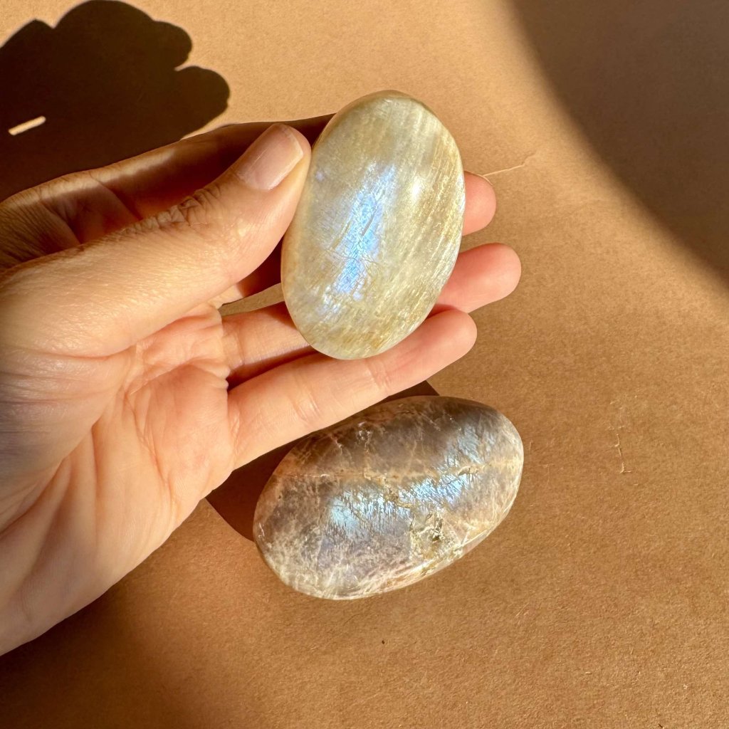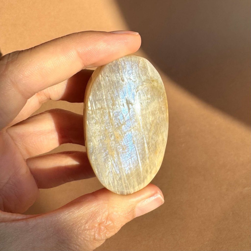 Tento hladký ovál z měsíčního kamene je ideální jako meditační kámen, talisman do ruky, na oltář nebo k relaxační masáži. Jeho tvar podporuje proudění energie a zároveň působí harmonizačně na tělo i mysl.