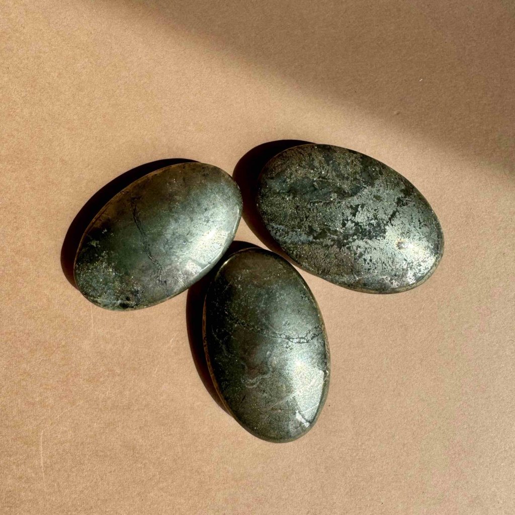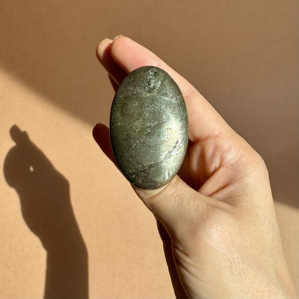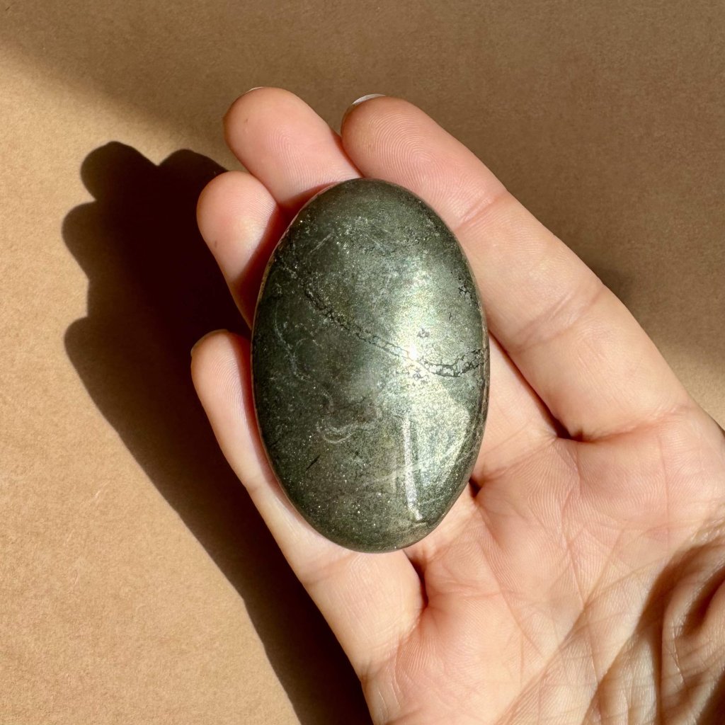 Tento elegantně leštěný oválek z pyritu, známého jako „kámen bohatství“ či kamenné zlato, je nejen vizuálně působivý, ale i energeticky silný. Jeho kovový lesk připomíná skrytý poklad – a přesně tak se i chová: chrání, posiluje a přitahuje hojnost.
