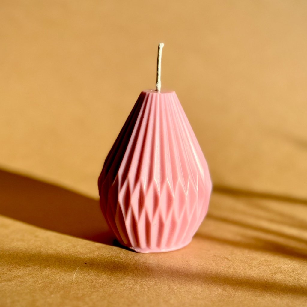 Přírodní ručně odlévaná svíčka ze sójového vosku ve tvaru hruštičky.