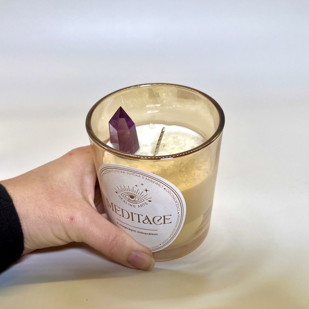 Svíčka Meditace s ametystovou špičkou sojová svíčka s levandulovou vůní