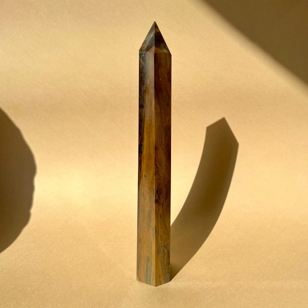 Prohlížíte si kámen ve tvaru obelisku. Hrot neboli obelisk se také nazýval “Pyramidion” jelikož podobně jako pyramida kumuluje energetický tok. Je to zároveň tvar krystalům nejpřirozenější, protože tak sami rostou. Kamenné špice automaticky aktivují “proudění” a toho se dá s výhodou využít při konkrétním směřování Vašeho záměru či harmonizování.